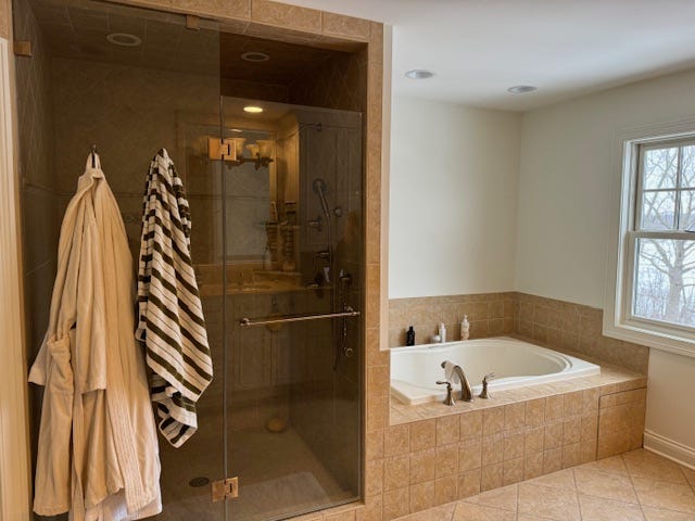 Marble countertops. A steam shower. A massive, sink-into-oblivion tub.