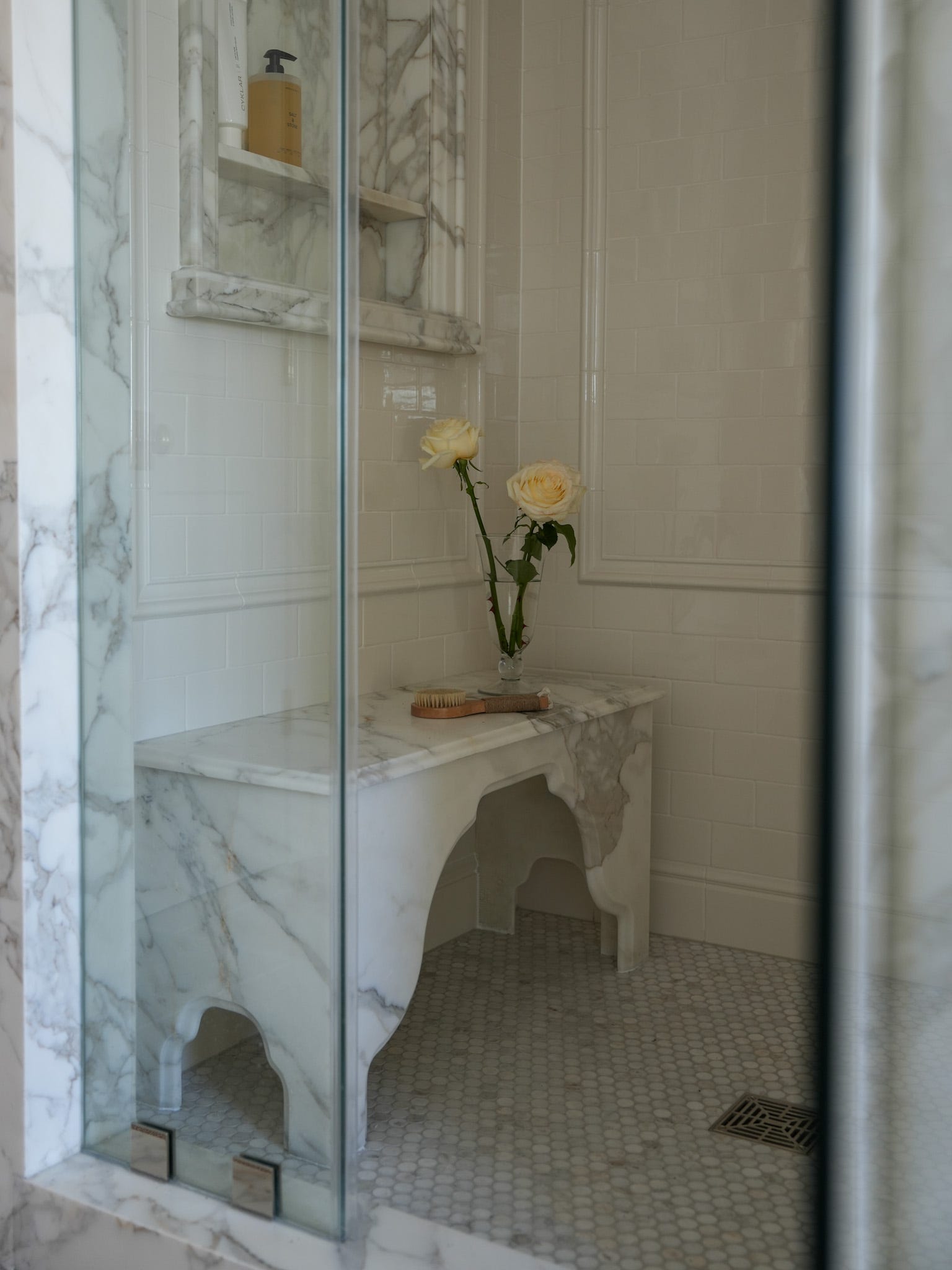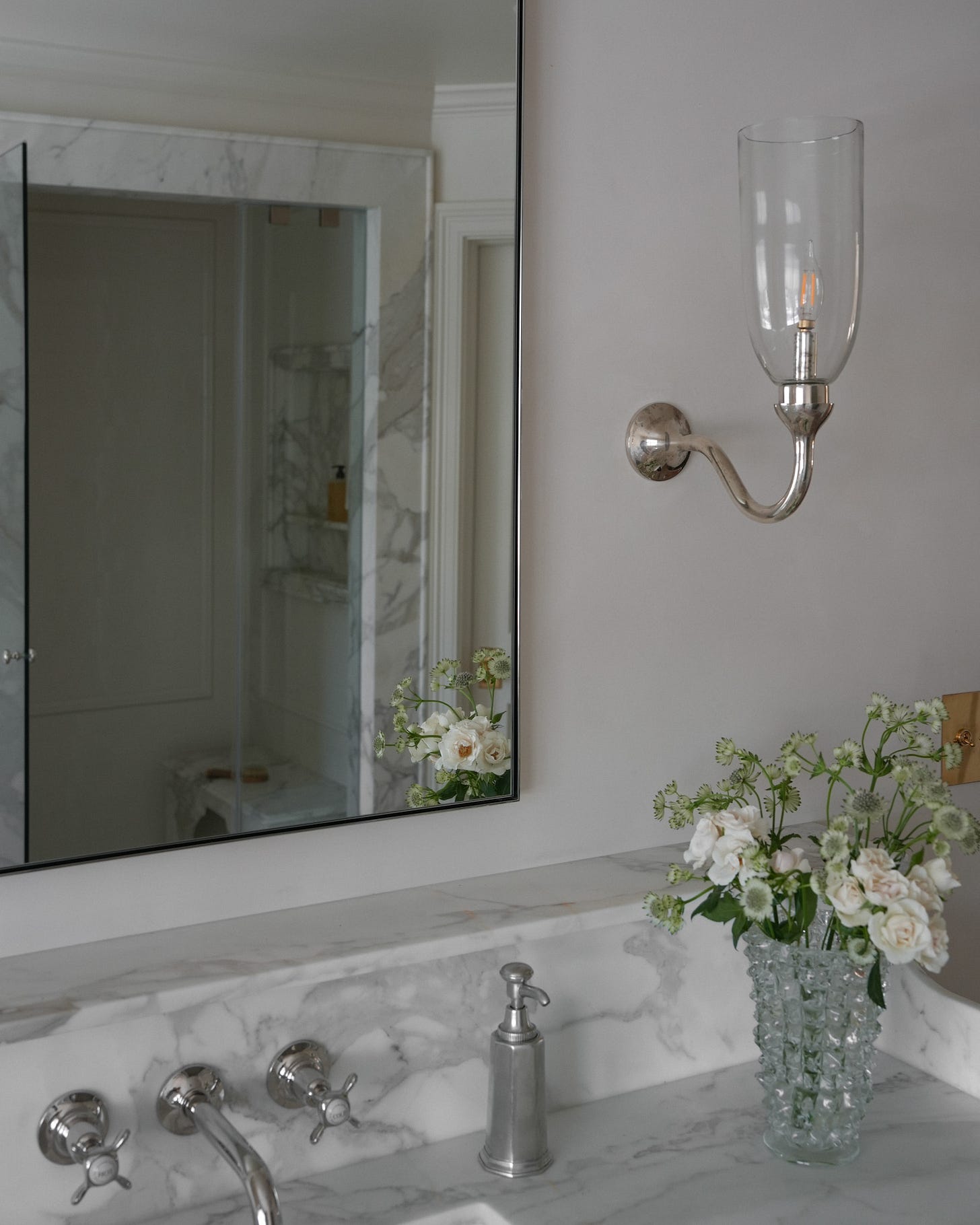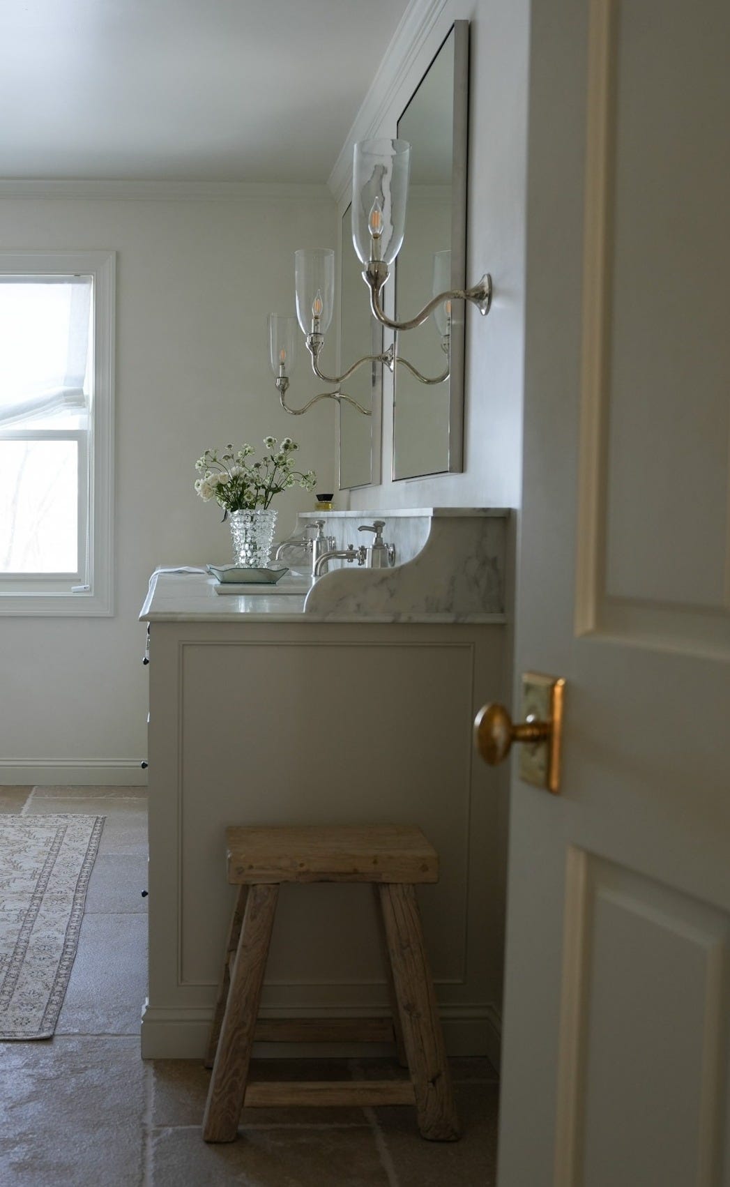 I saw these slabs at Calia Stone and instantly fell in love—the tranquil veining, the soft neutrality, the quiet movement. Admittedly, it wasn’t the cheapest marble — but it was the marble. I couldn’t stop thinking about it. So I made cost cuts in other areas (more on that below).Rose Uniacke curve sconces