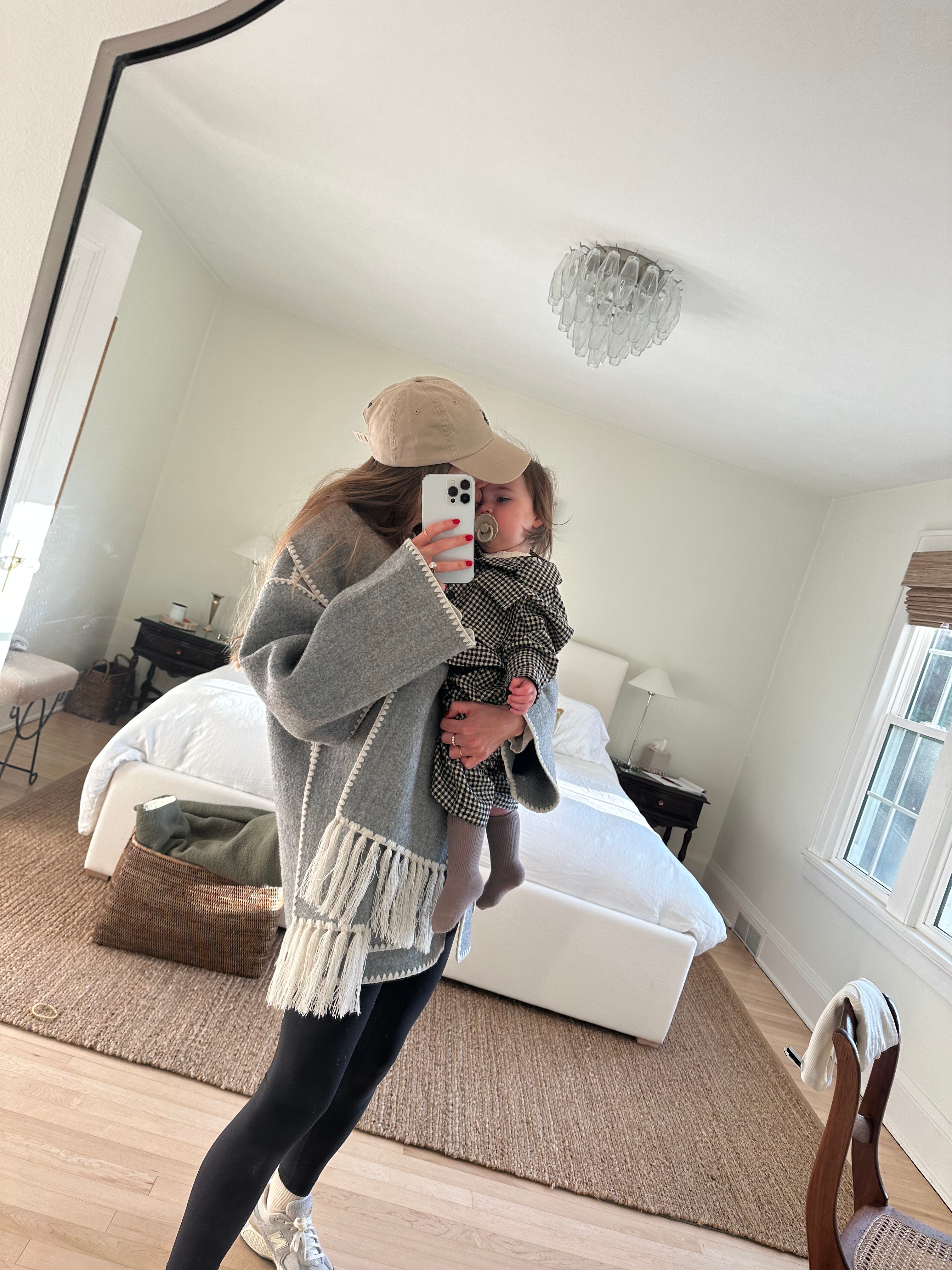 My Monday was slow; I didn’t shower, and it was a leggings and ball cap type of day (perhaps this day inspired my latest post, Ways to Make Rolling Out of Bed Look Fantastic). Not sure I look “fantastic” here, but this Toteme jacket makes all things look better, leggings and all (also love the black and green hue of this jacket).